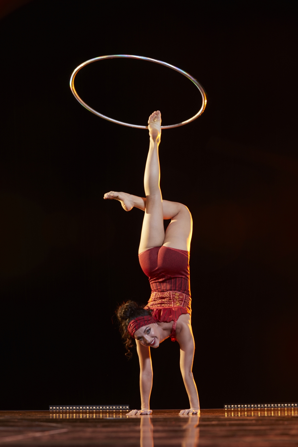 At the height of a frenzied moment, a gypsy performer emerges, causing everyone to stop. Using her entire body and all her limbs, she dazzles them with her ability to spin and twirl a multitude of hoops.