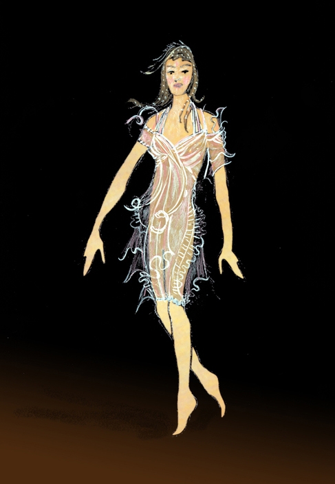 example, made from silk georgette, crepe de Chine and satin, the costumes in the