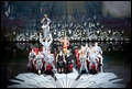 act featured aerialists, Icarian acrobats, hand balancers, dancers and characters