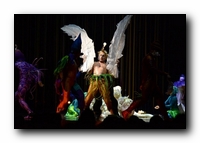 The Skywatcher, a birdlike creature, plucks at the wings, enacting his own mock