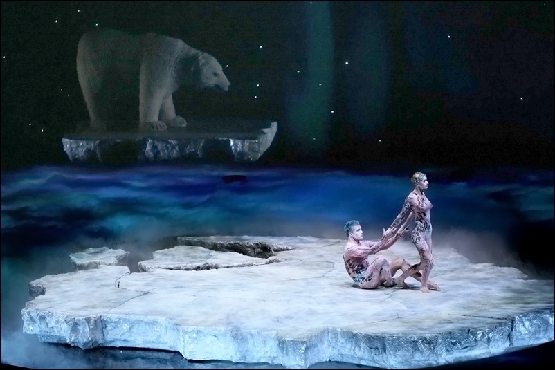 Two acrobats evoke the love of the original couple by performing a