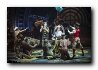 “My Fair Lady”) in this group act that combines drumming (on various objects,