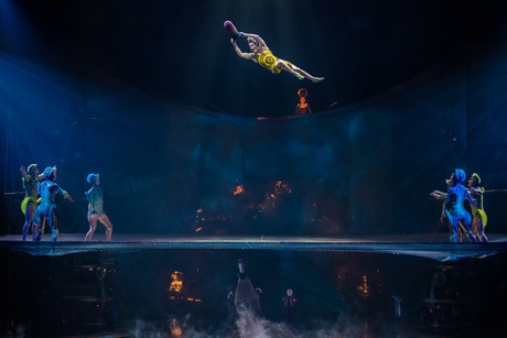 Above a vast ocean, underwater creatures pirouette, bounce and
