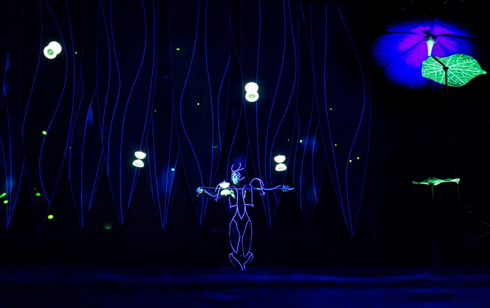 illuminating patches of nature in a dreamlike dance. The stage pulses with a