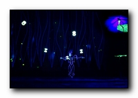 game of light and darkness as the weevil chases the luminous insects, bringing
