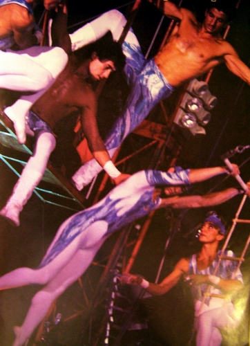 and Odile Simonin in Pink and Blue costumes, they hurl themselves across the skies